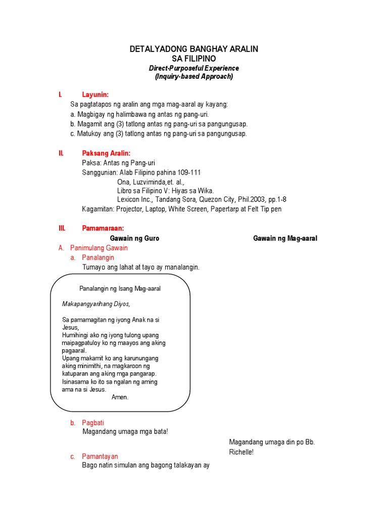 Detalyadong Banghay Aralin Antas Ng Pang Uri